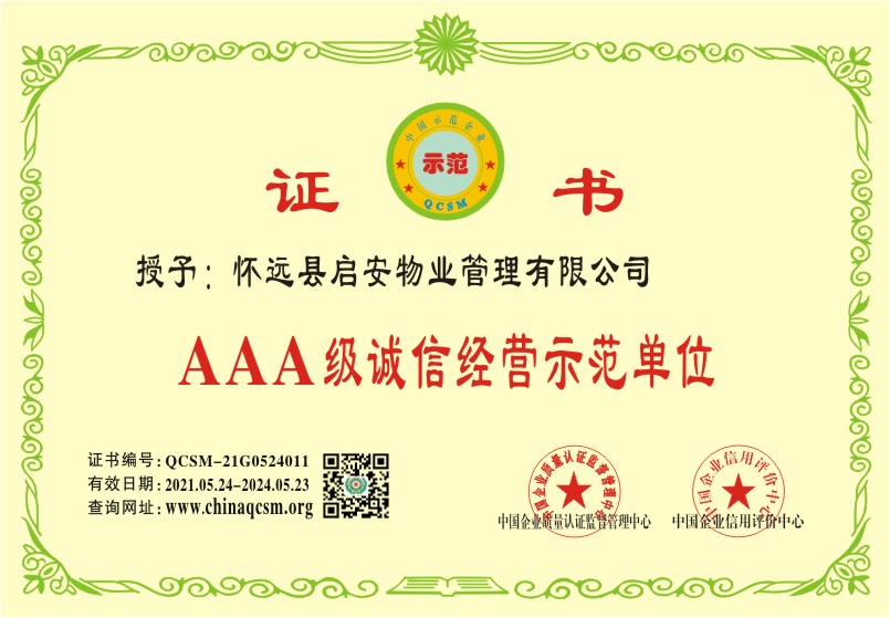 当前位置:首页 > 证书查询 > 怀远县启安物业管理有限公司