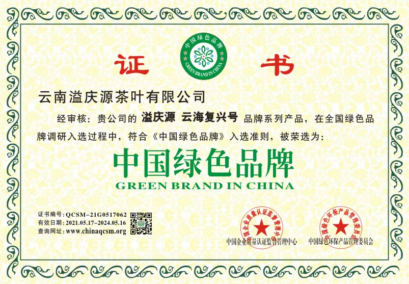 当前位置:首页 > 证书查询 > 云南溢庆源茶叶有限公司