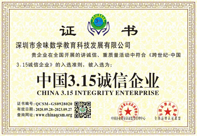 当前位置:首页 > 证书查询 > 深圳市余味数学教育科技发展有限公司