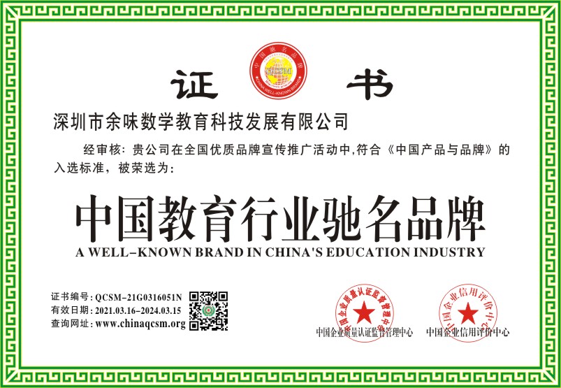 当前位置:首页 > 证书查询 > 深圳市余味数学教育科技发展有限公司