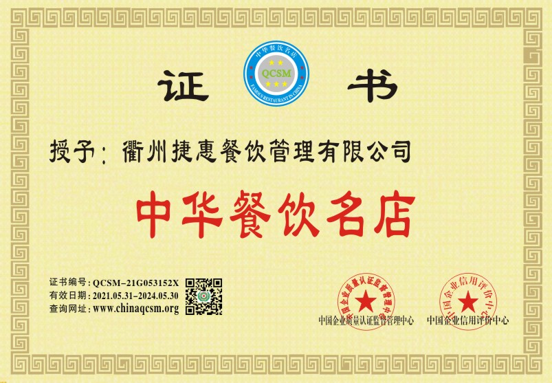 当前位置:首页 > 证书查询 > 衢州捷惠餐饮管理有限公司