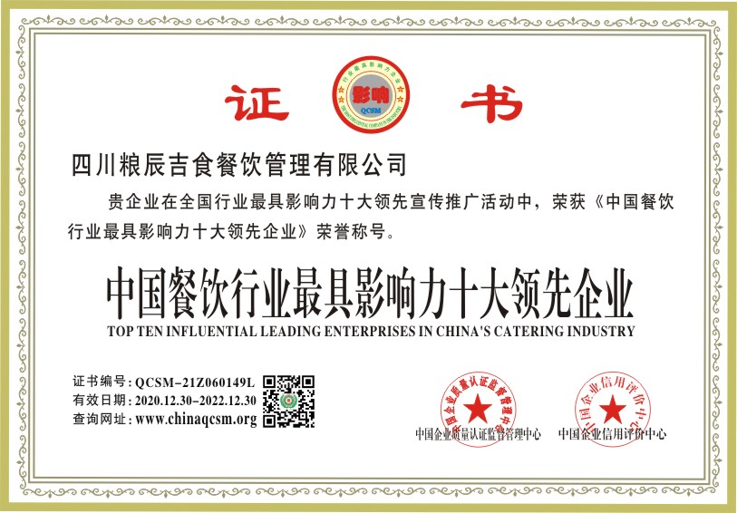 当前位置:首页 > 证书查询 > 四川粮辰吉食餐饮管理有限公司