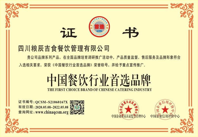 当前位置:首页 > 证书查询 > 四川粮辰吉食餐饮管理有限公司