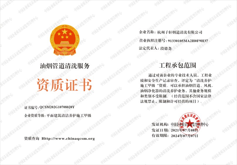 当前位置:首页 > 证书查询 > 杭州子轩烟道清洗有限公司