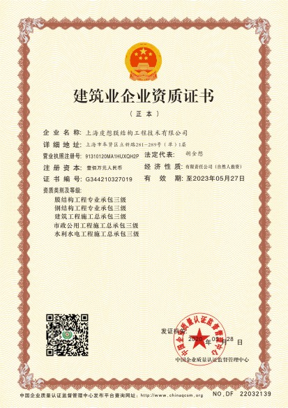当前位置:首页 > 证书查询 > 上海虔想膜结构工程技术有限公司