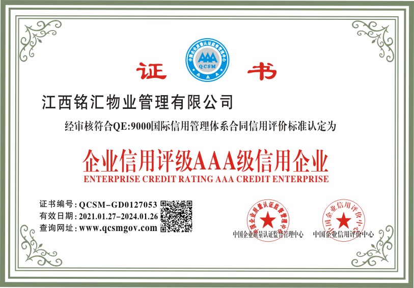 当前位置:首页 > 证书查询 > 江西铭汇物业管理有限公司
