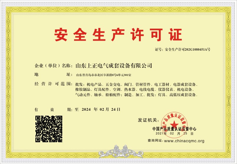 当前位置:首页 > 证书查询 > 山东上正电气成套设备有限公司