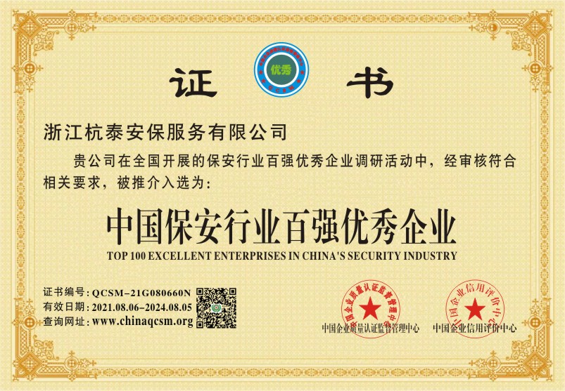 当前位置:首页 > 证书查询 > 浙江杭泰安保服务有限公司