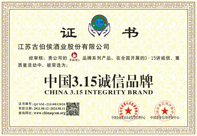 当前位置:首页 > 证书查询 > 江苏古伯侯酒业股份有限公司