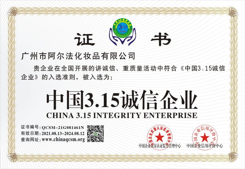 当前位置:首页 > 证书查询 > 广州市阿尔法化妆品有限公司