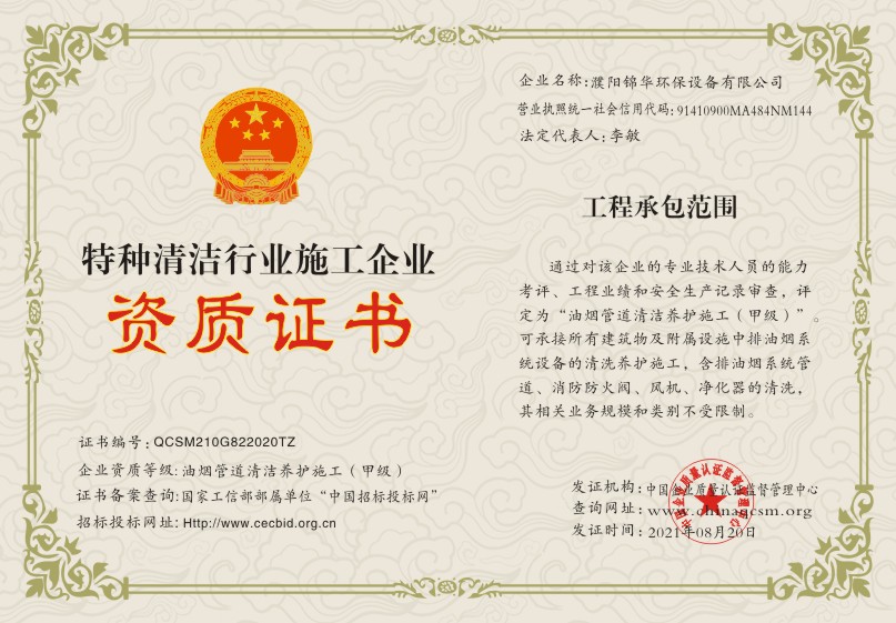 当前位置:首页 > 证书查询 > 濮阳锦华环保设备有限公司