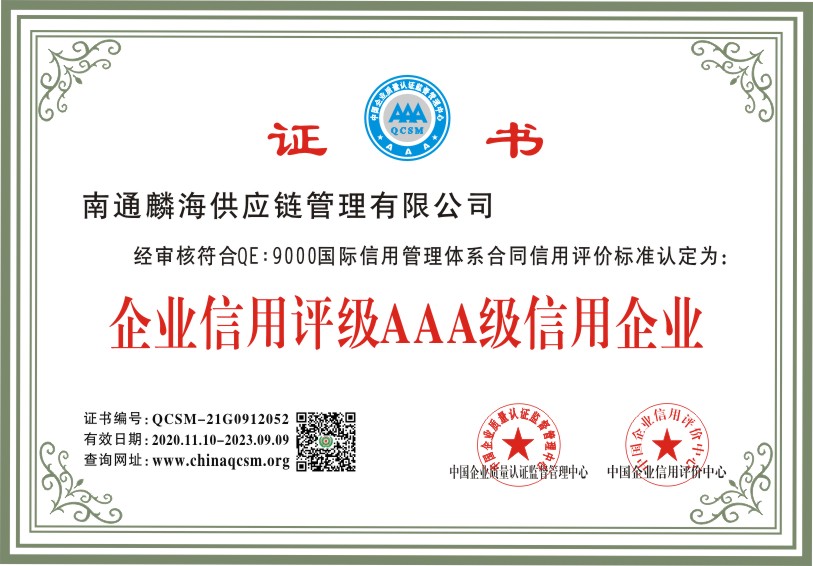 当前位置:首页 > 证书查询 > 南通麟海供应链管理有限公司