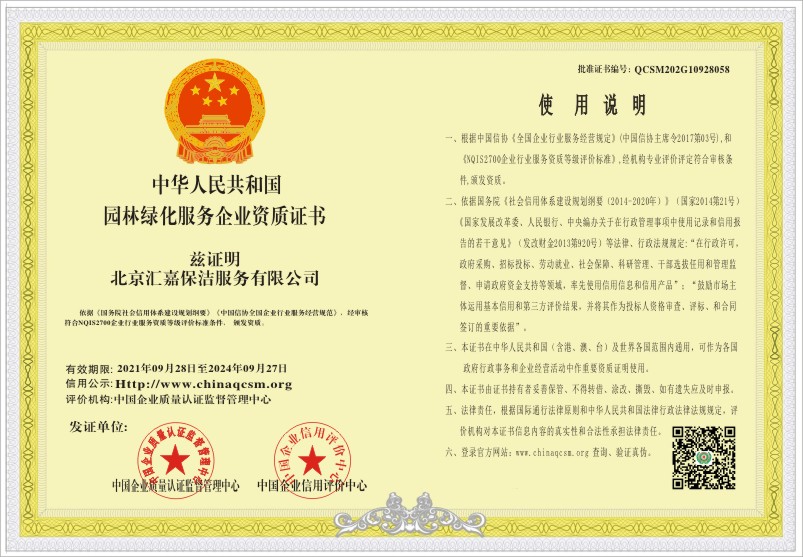 当前位置:首页 > 证书查询 > 北京汇嘉保洁服务有限公司