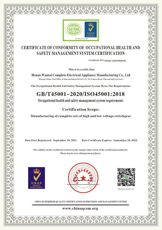 当前位置:首页 > 证书查询 > Henan Wantai Complete Electrical Appliance Manufacturing Co., Ltd