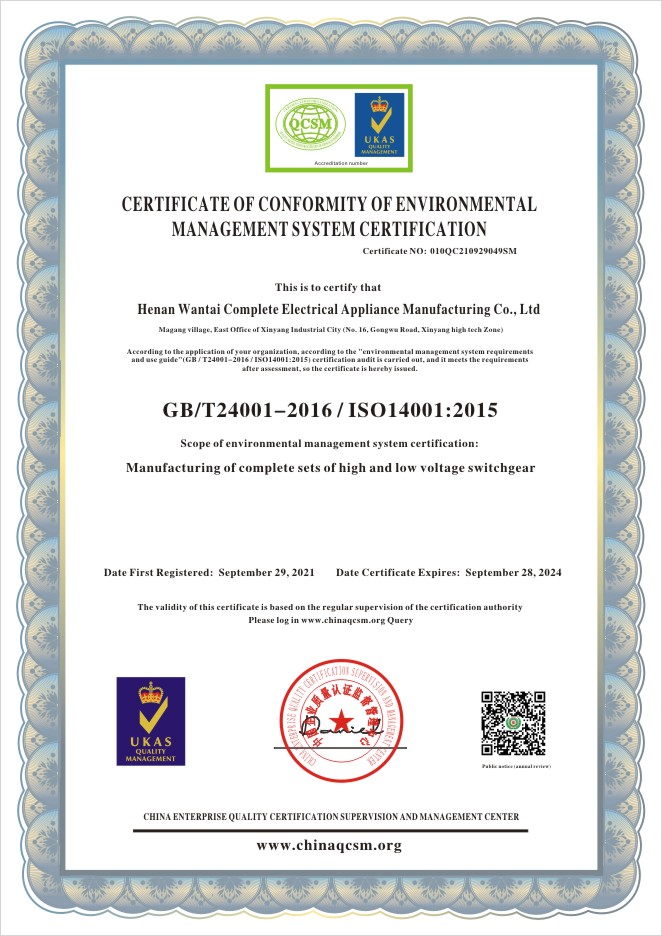 当前位置:首页 > 证书查询 > Henan Wantai Complete Electrical Appliance Manufacturing Co., Ltd