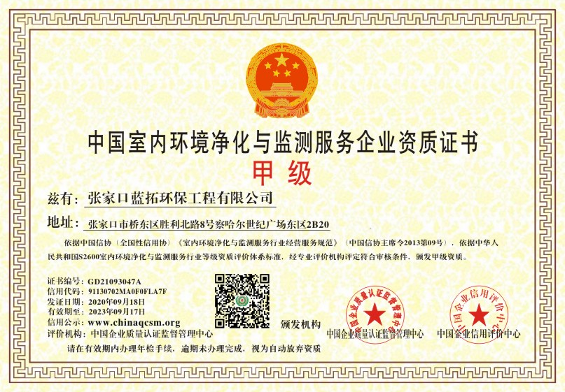 当前位置:首页 > 证书查询 > 张家口蓝拓环保工程有限公司