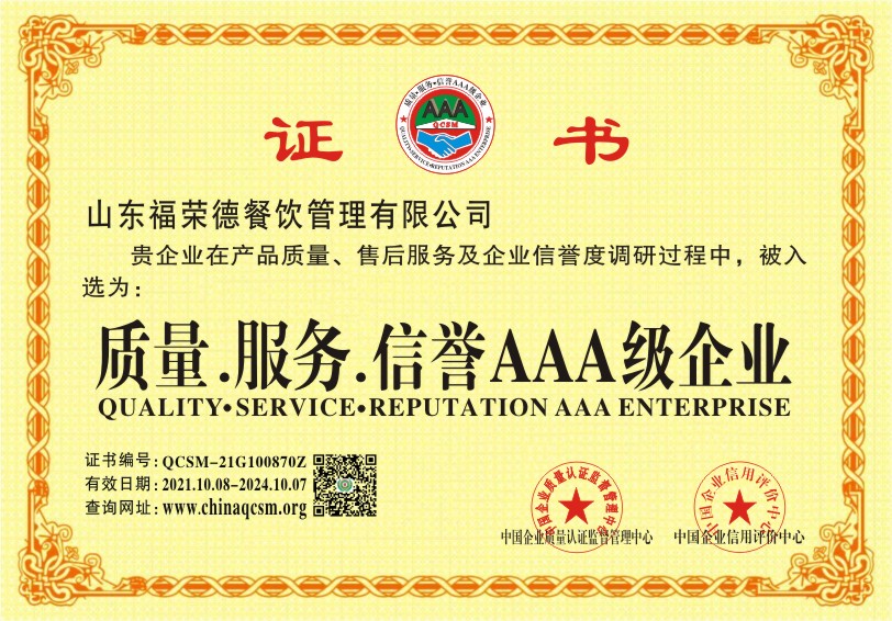 当前位置:首页 > 证书查询 > 山东福荣德餐饮管理有限公司