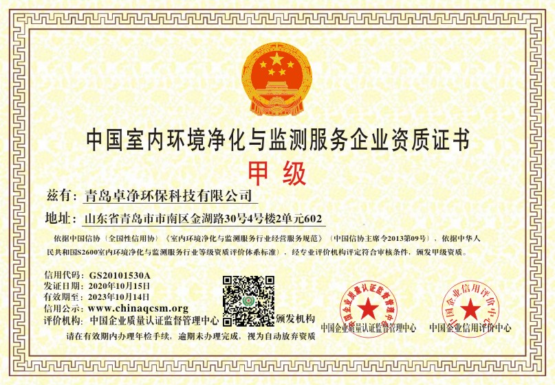 当前位置:首页 > 证书查询 > 青岛卓净环保科技有限公司