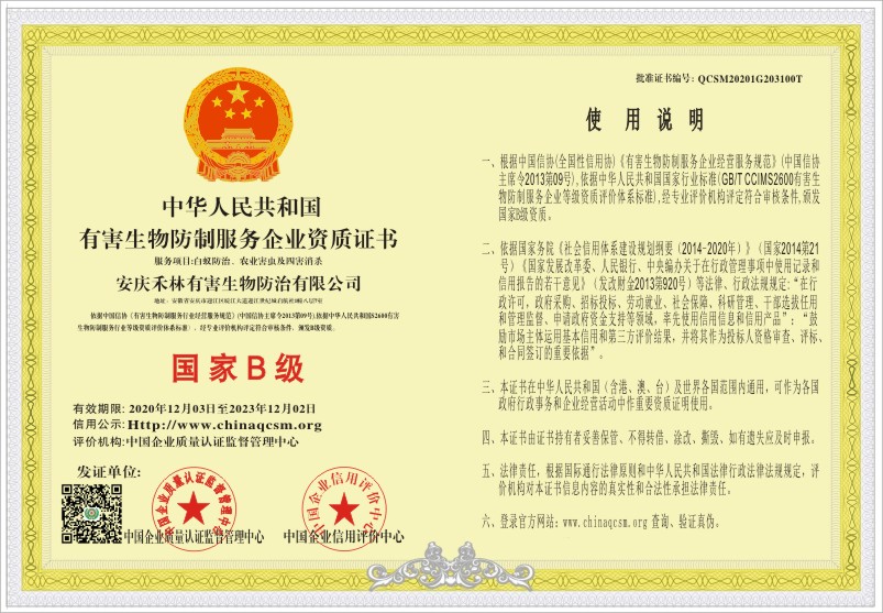 当前位置:首页 > 证书查询 > 安庆禾林有害生物防治有限公司