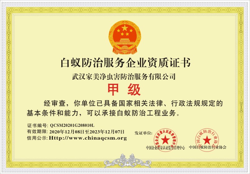 当前位置:首页 > 证书查询 > 武汉家美净虫害防治服务有限公司