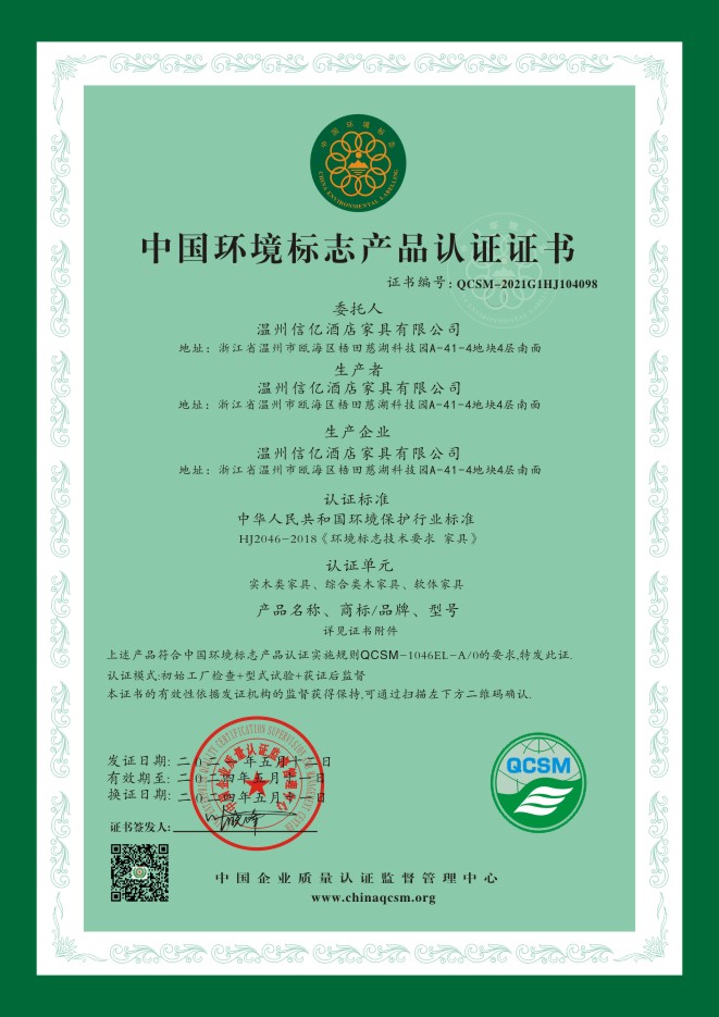 当前位置:首页 > 证书查询 > 温州信亿酒店家具有限公司