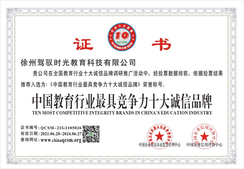 当前位置:首页 > 证书查询 > 徐州驾驭时光教育科技有限公司