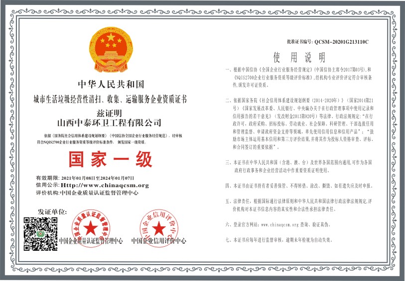 当前位置:首页 > 证书查询 > 山西中泰环卫工程有限公司