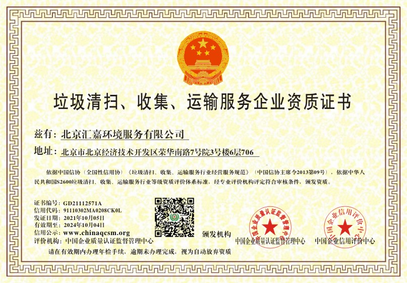 当前位置:首页 > 证书查询 > 北京汇嘉环境服务有限公司