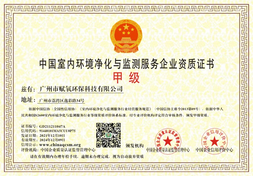 当前位置:首页 > 证书查询 > 广州市赋氧环保科技有限公司