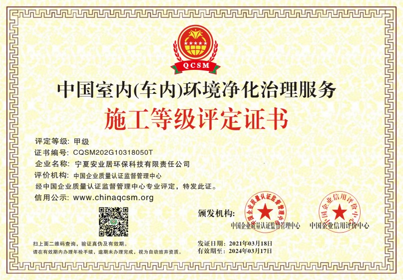 当前位置:首页 > 证书查询 > 宁夏安业居环保科技有限责任公司
