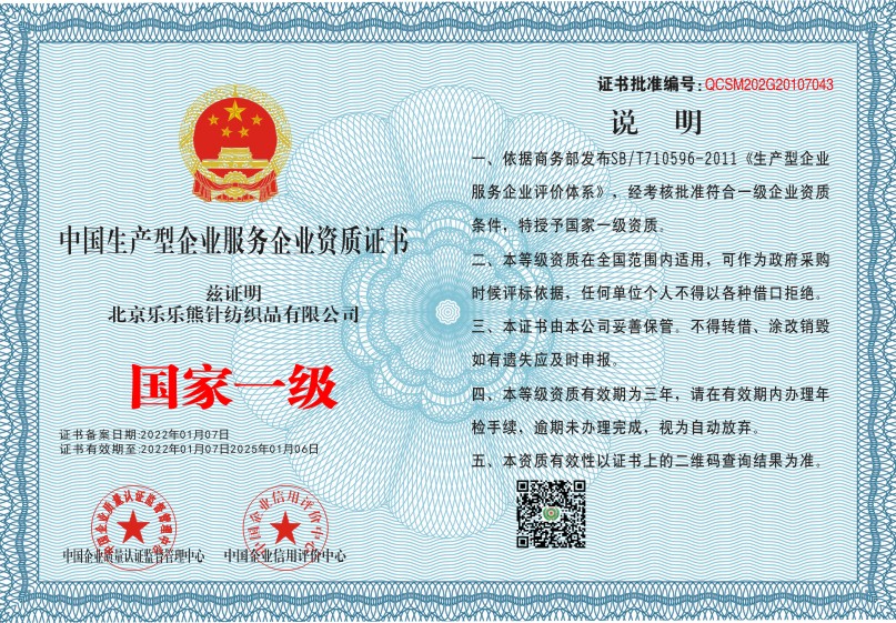 当前位置:首页 > 证书查询 > 北京乐乐熊针纺织品有限公司