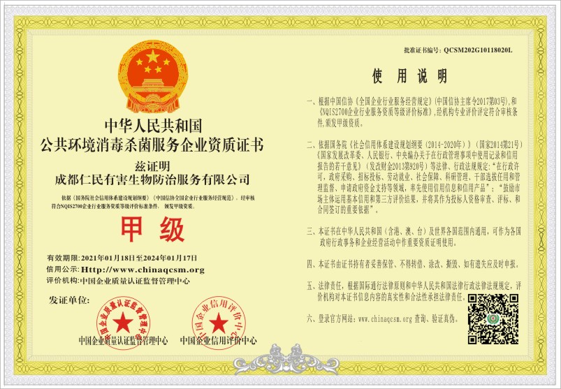 当前位置:首页 > 证书查询 > 成都仁民有害生物防治服务有限公司