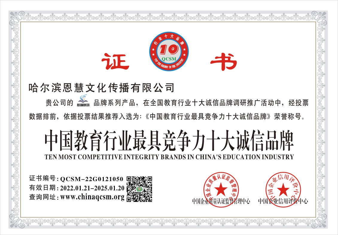 当前位置:首页 > 证书查询 > 哈尔滨恩慧文化传播有限公司