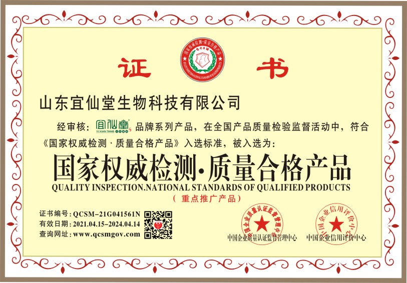当前位置:首页 > 证书查询 > 山东宜仙堂生物科技有限公司
