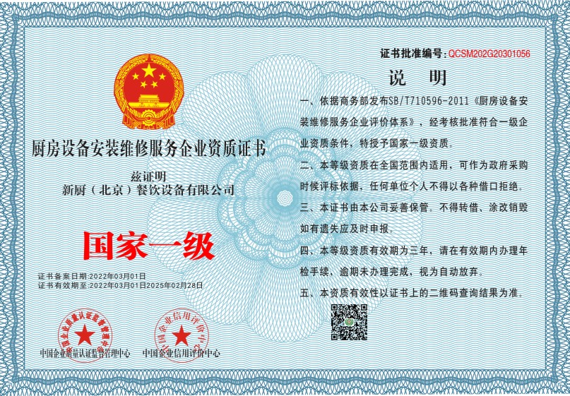 当前位置:首页 > 证书查询 > 新厨(北京)餐饮设备有限公司