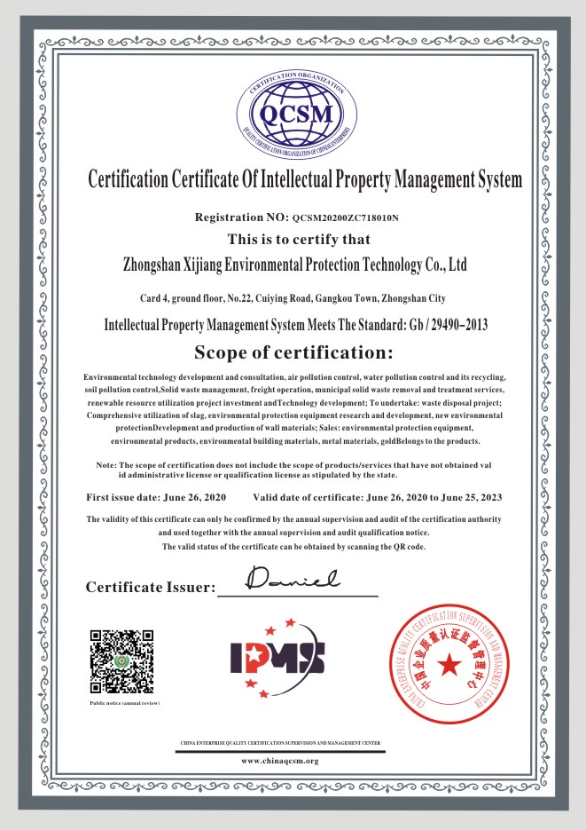 当前位置:首页 > 证书查询 > Zhongshan Xijiang Environmental Protection Technology Co., Ltd