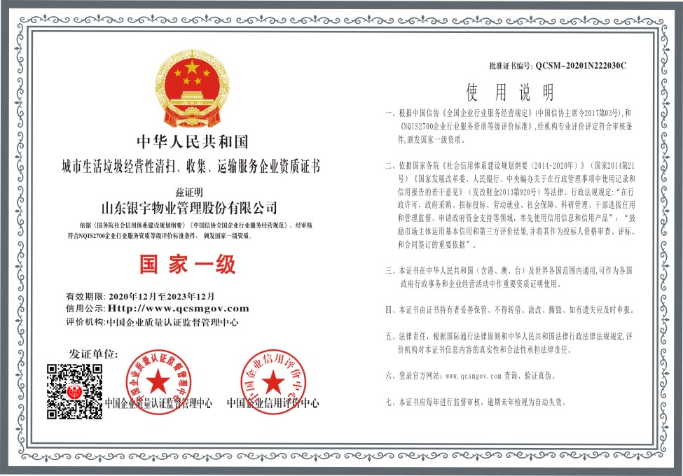 当前位置:首页 > 证书查询 > 山东银宇物业管理股份有限公司
