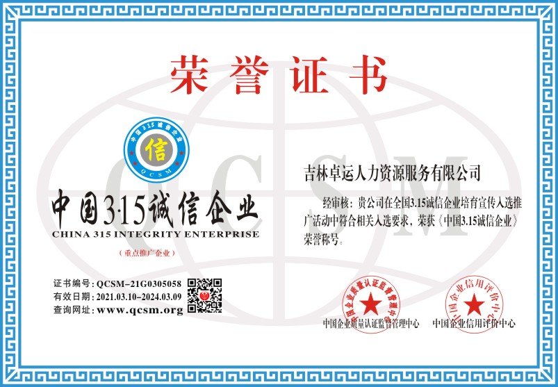 当前位置:首页 > 证书查询 > 吉林卓运人力资源服务有限公司
