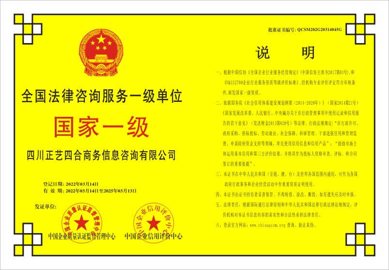 当前位置:首页 > 证书查询 > 四川正艺四合商务信息咨询有限公司