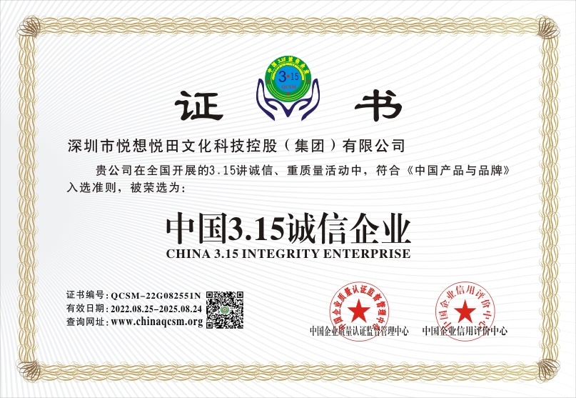 当前位置:首页 > 证书查询 > 深圳市悦想悦田文化科技控股(集团)有限公司