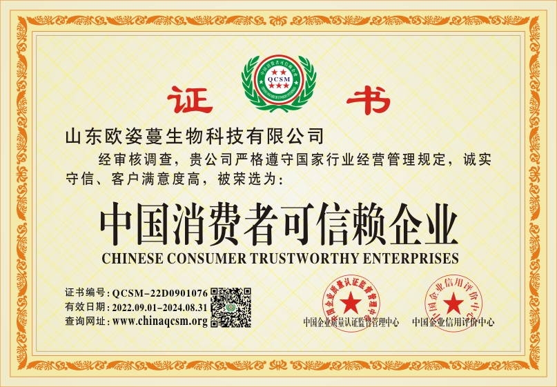 当前位置:首页 > 证书查询 > 山东欧姿蔓生物科技有限公司