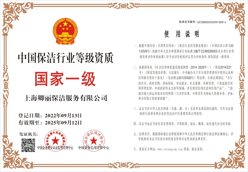 当前位置:首页 > 证书查询 > 上海卿丽保洁服务有限公司