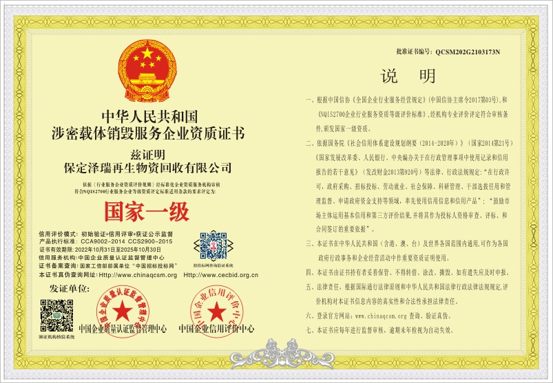 当前位置:首页 > 证书查询 > 保定泽瑞再生物资回收有限公司