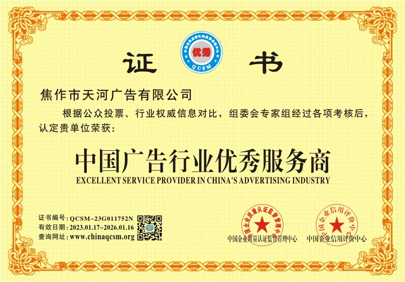 当前位置:首页 > 证书查询 > 焦作市天河广告有限公司