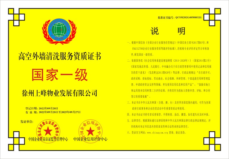 当前位置:首页 > 证书查询 > 徐州上峰物业发展有限公司
